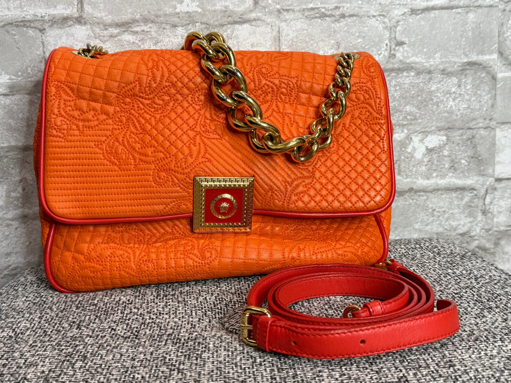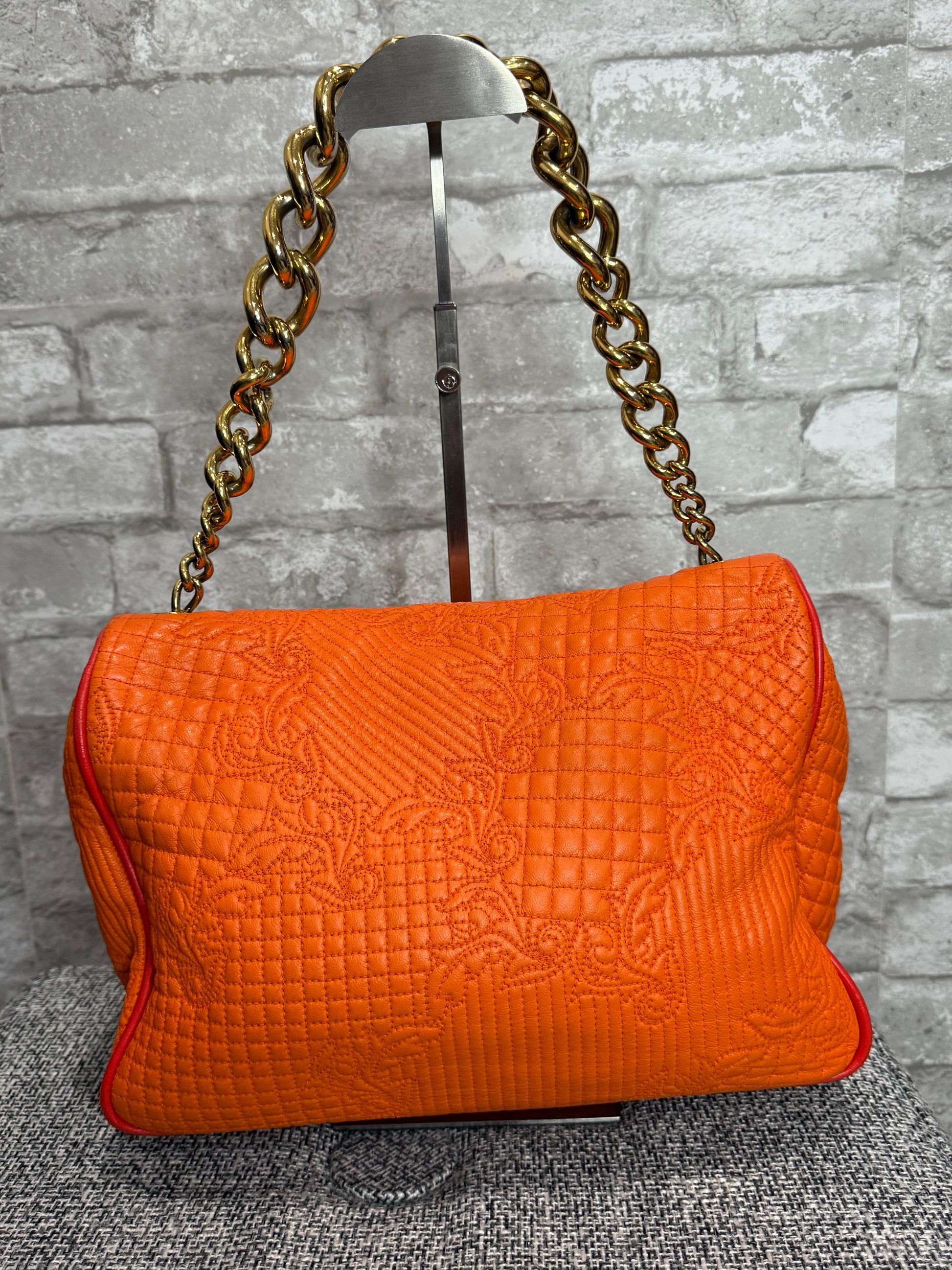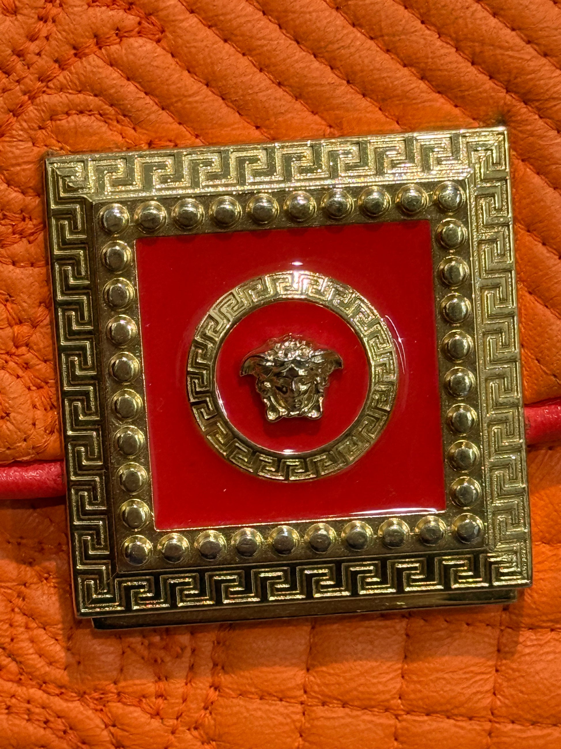 π π Versace Orange Micro Vanitas Quilted Leather Shoulder Bag π π