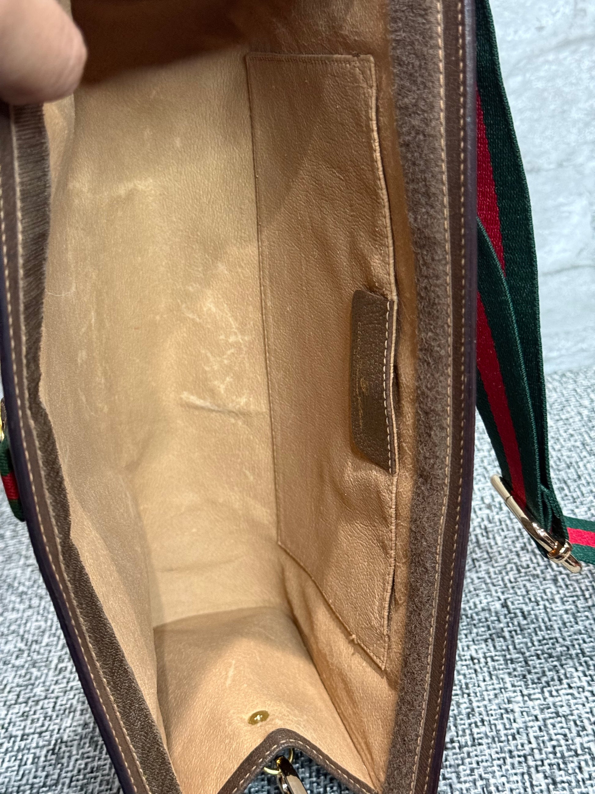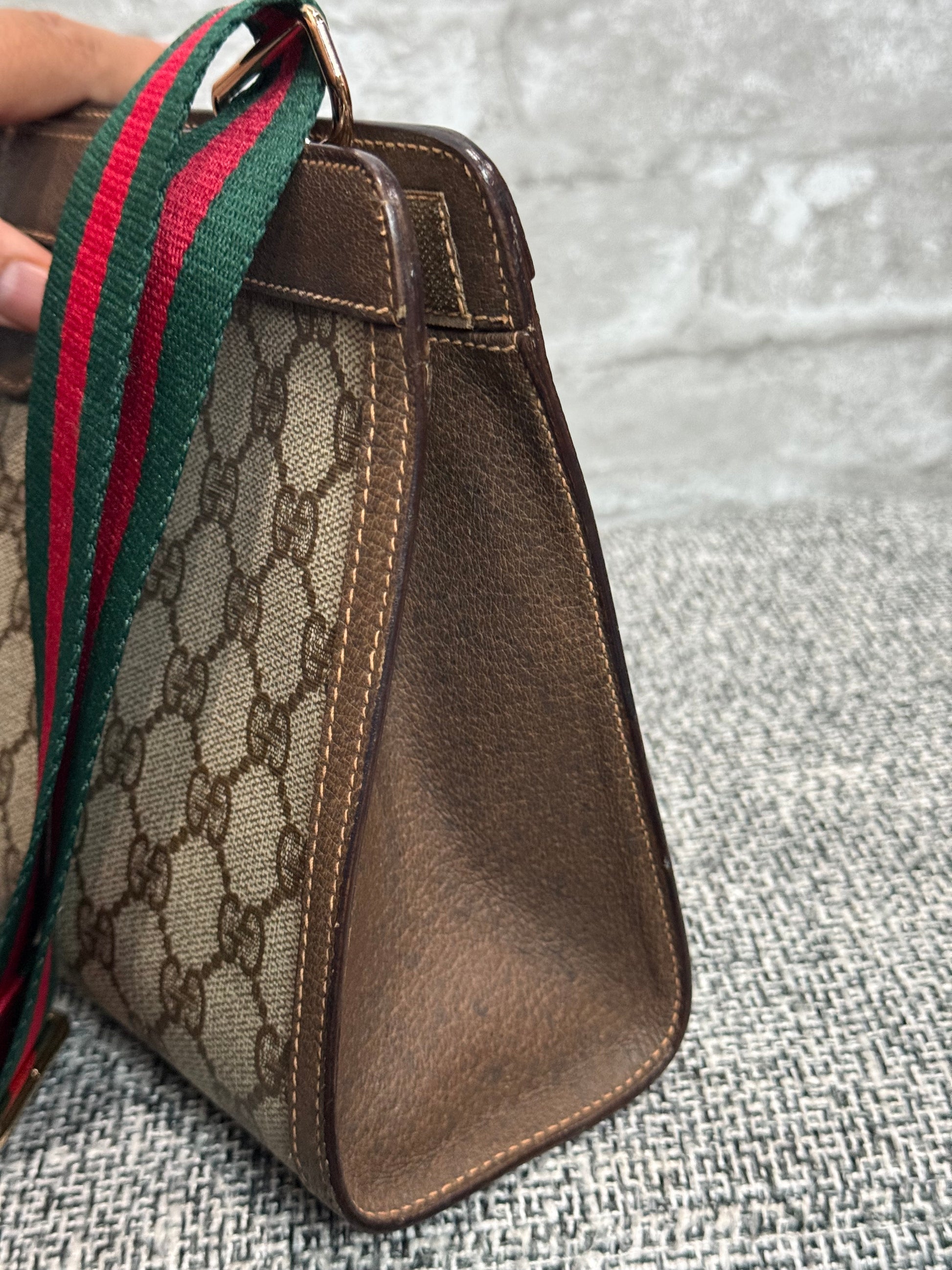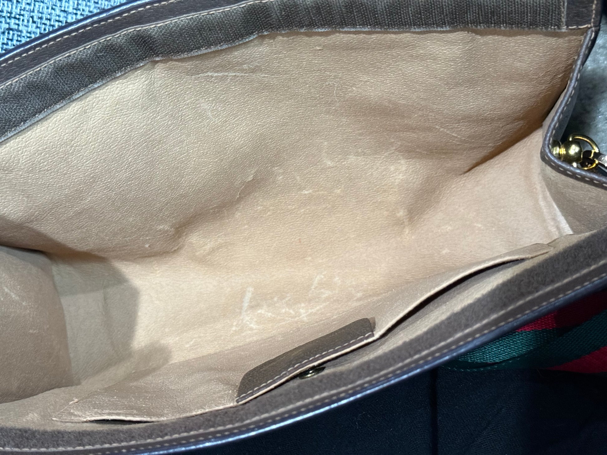 Good vintage condition, Gucci clutch turned into a crossbody bag. Added is an unbranded D-ring to connect unbranded strap to convert this authentic preloved luxury clutch into your everyday use ๐ some wear throughout, interior has minor scratch, wear and ink marks. But beautiful vintage clutch/bag for everyday use!