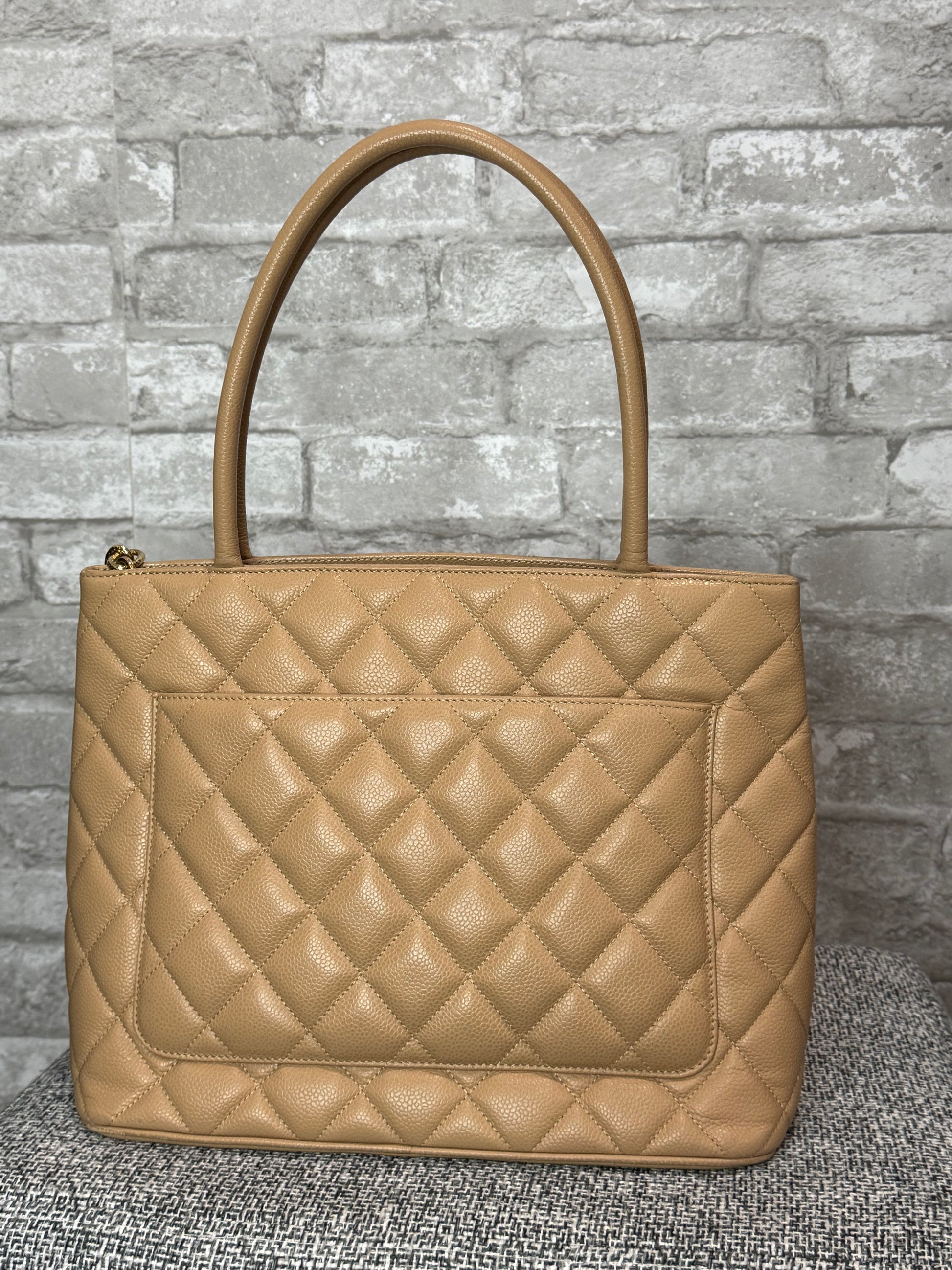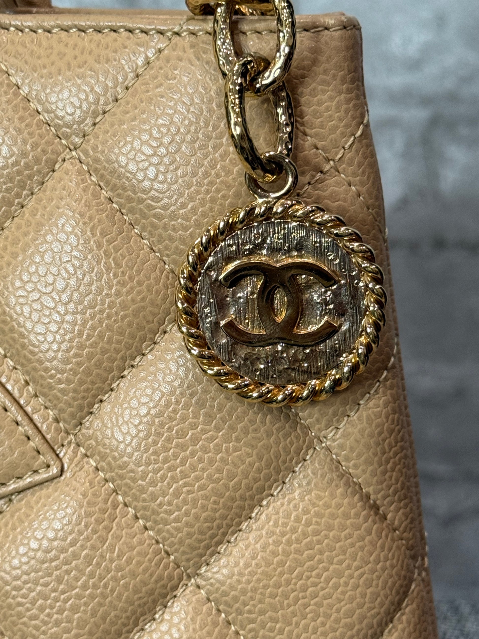 👜Chanel Medallion Tote Bag Quilted Caviar Leather in Beige 👜