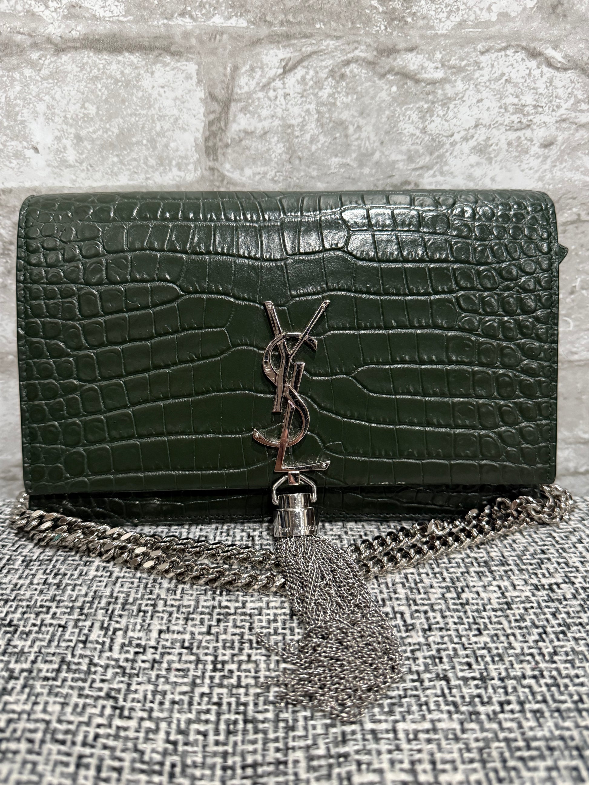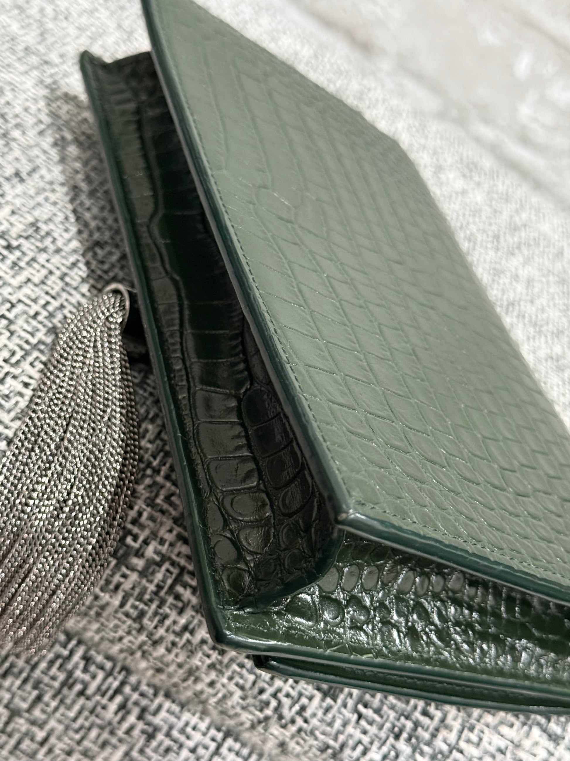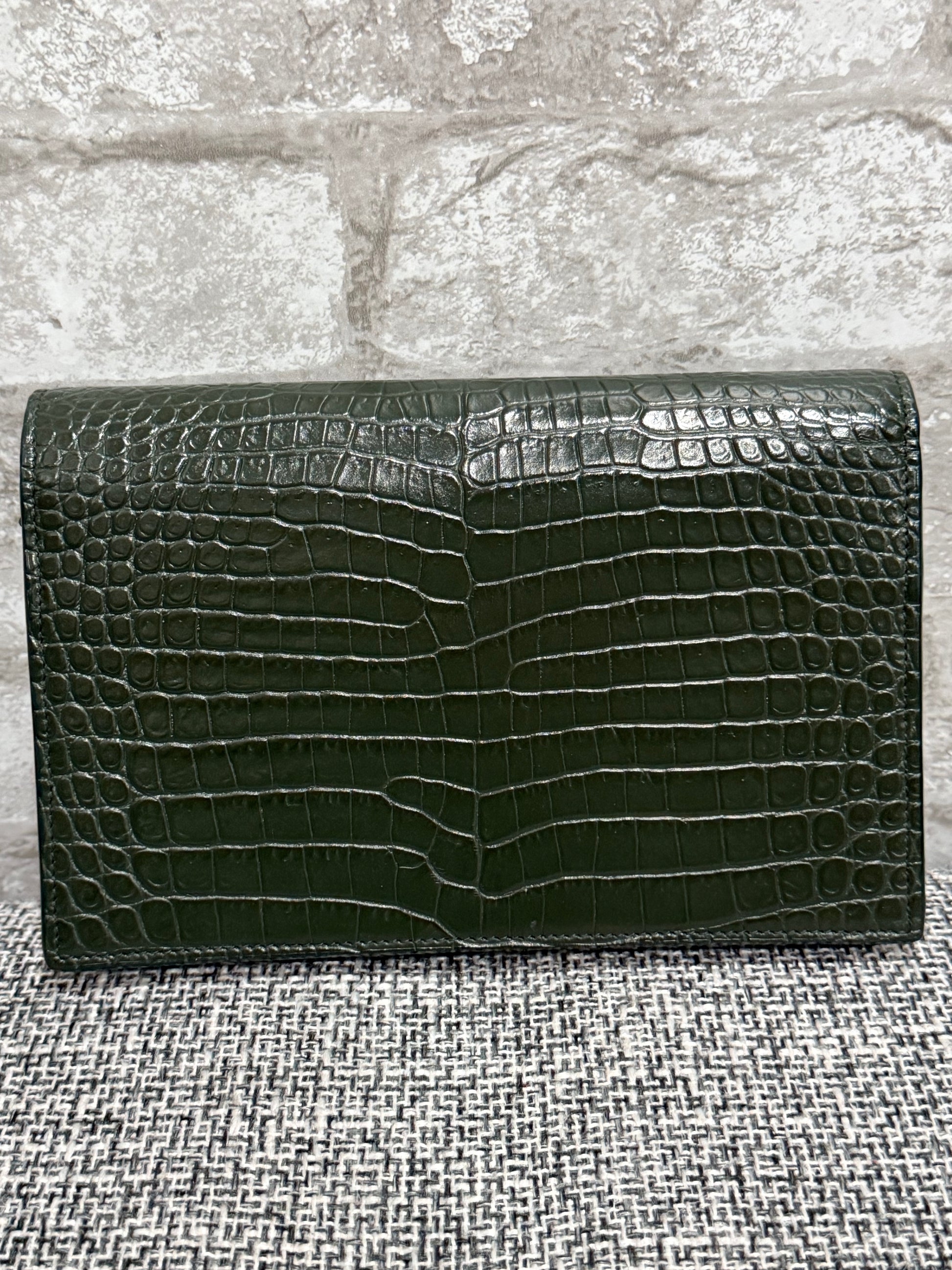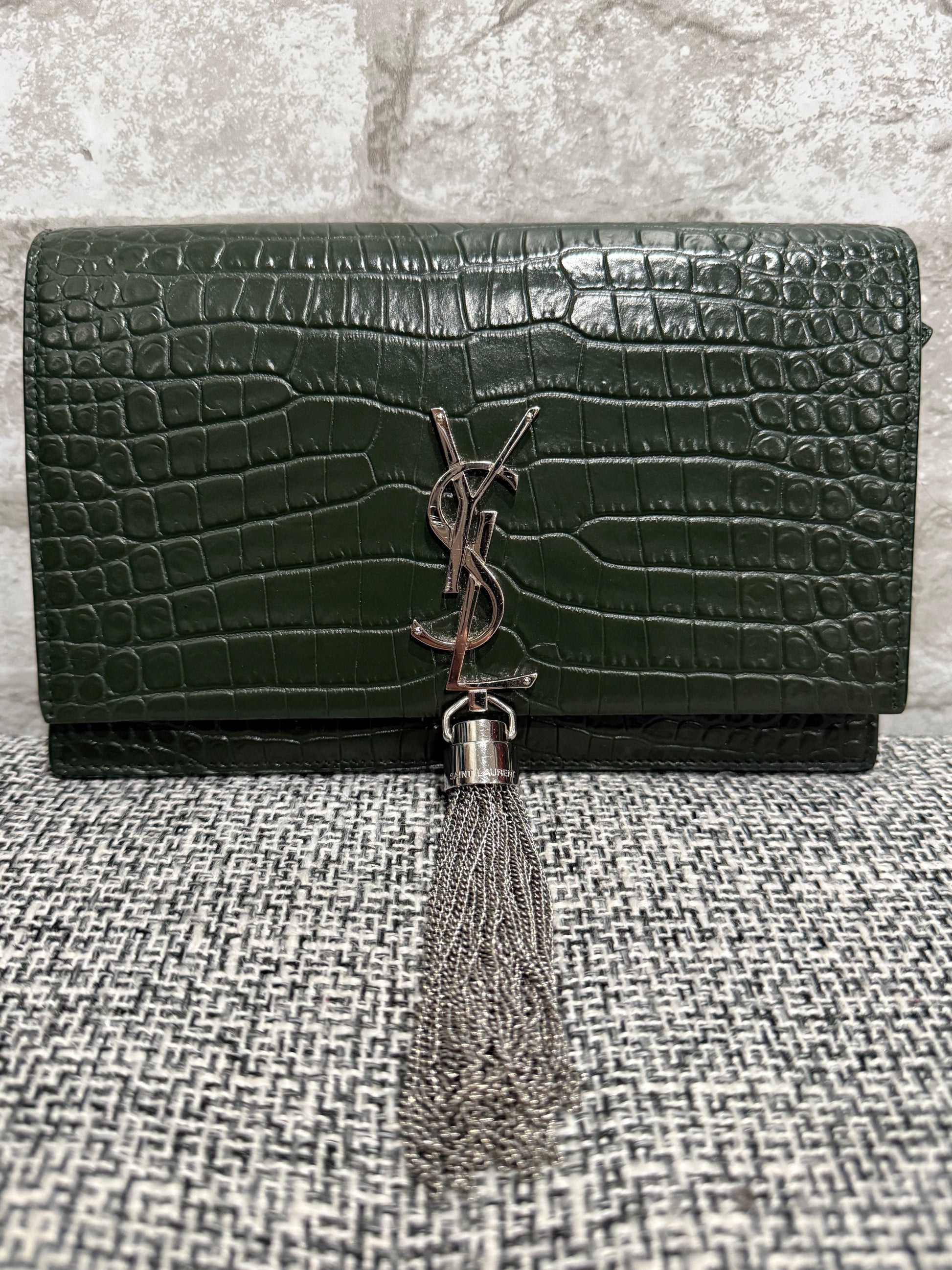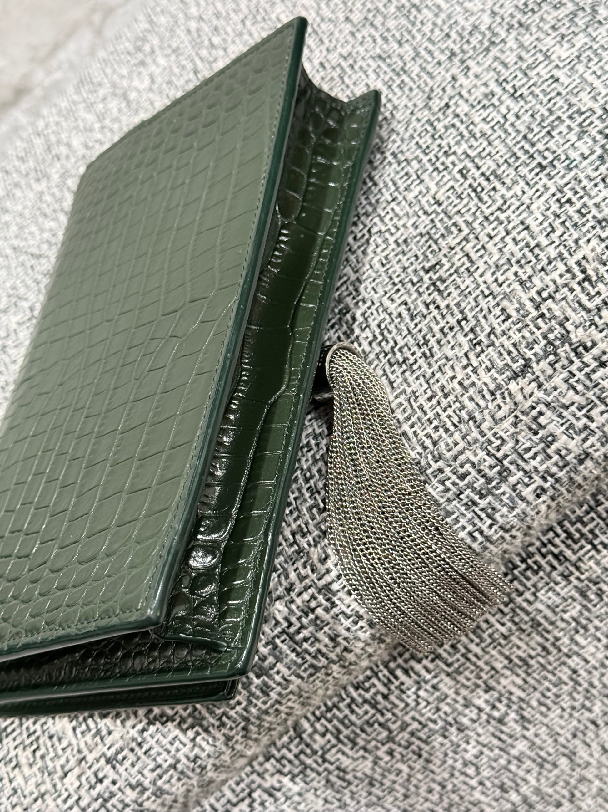 Classic Monogram Tassel Crossbody Bag Crocodile Embossed Leather