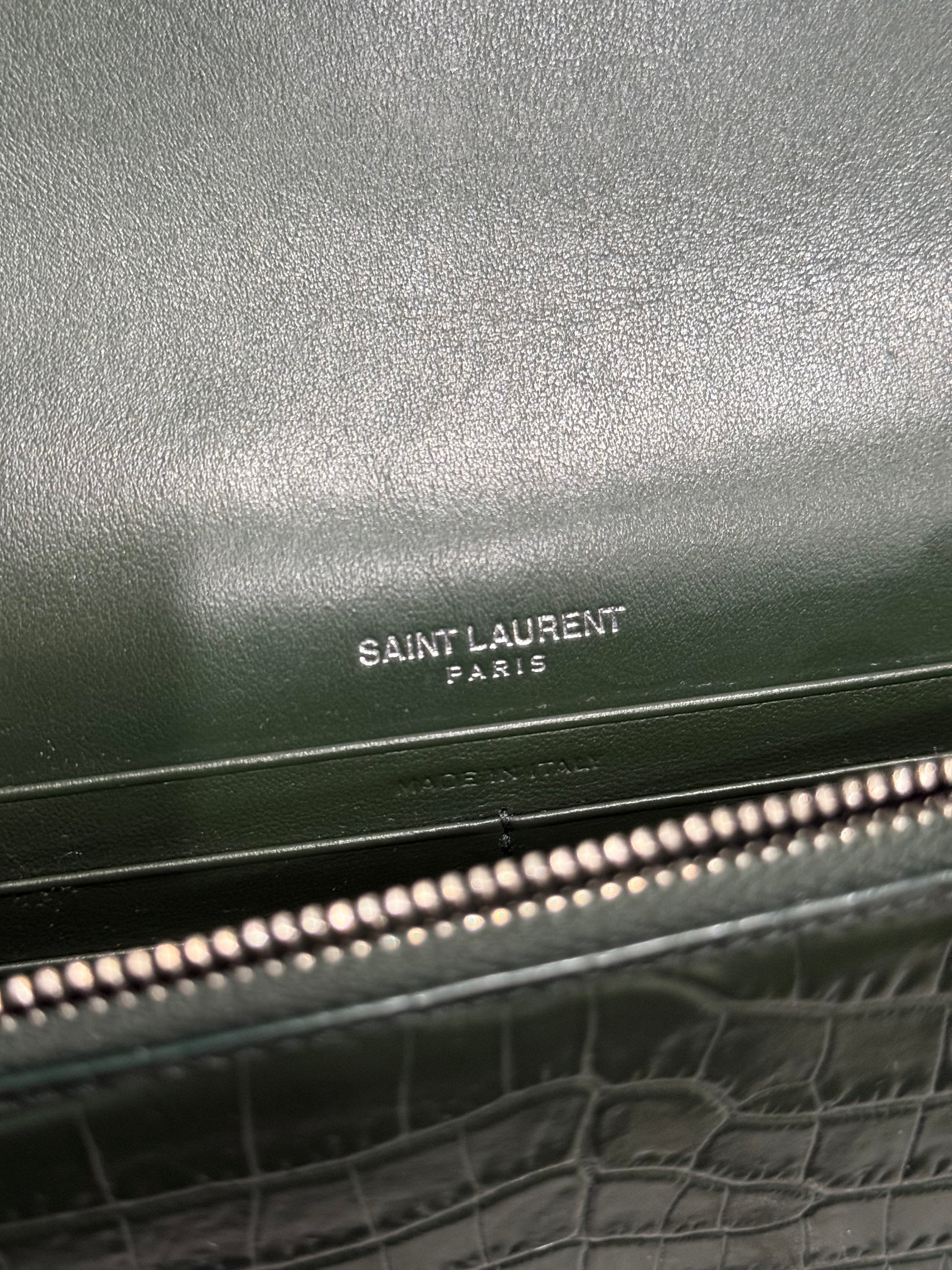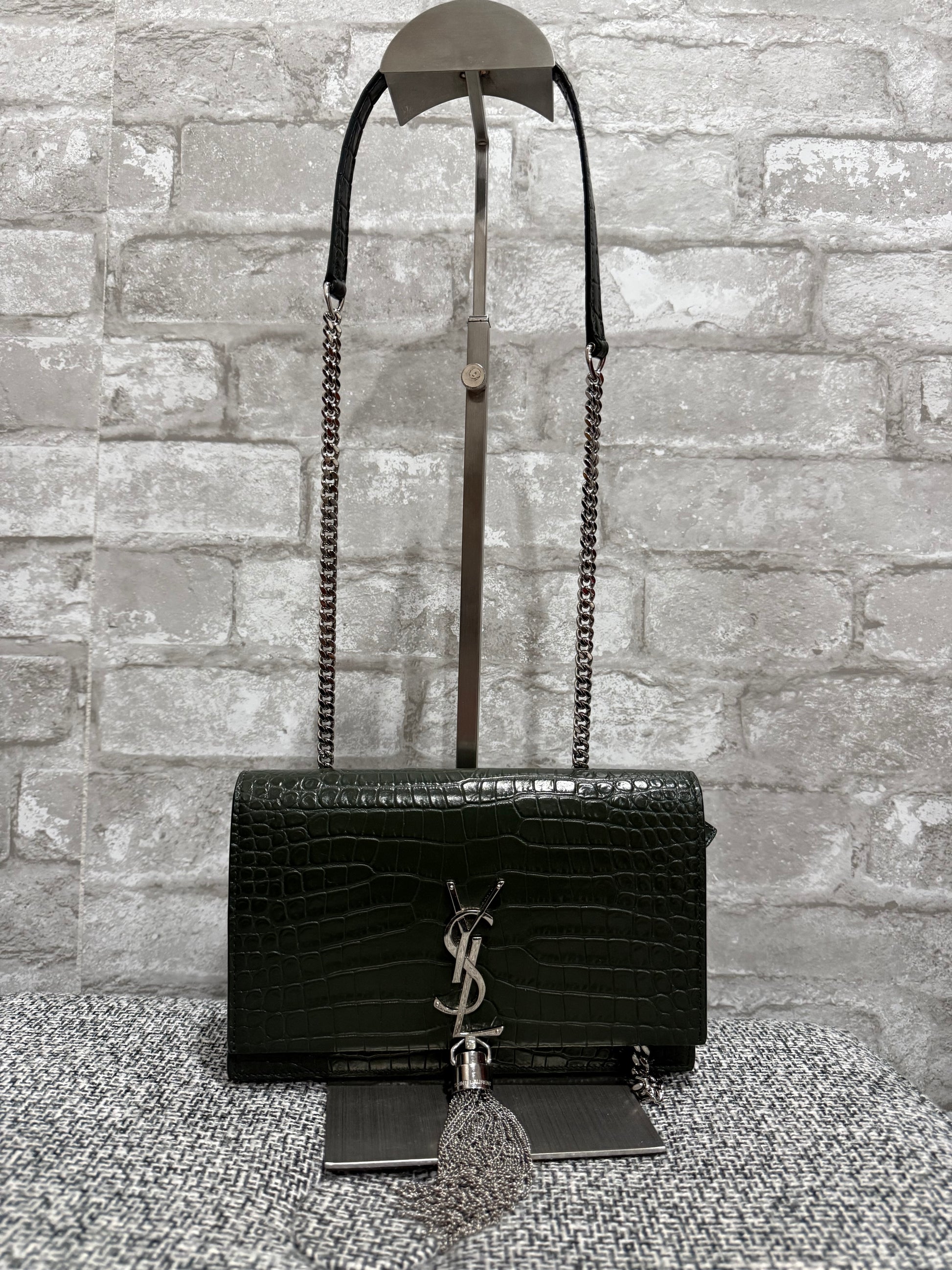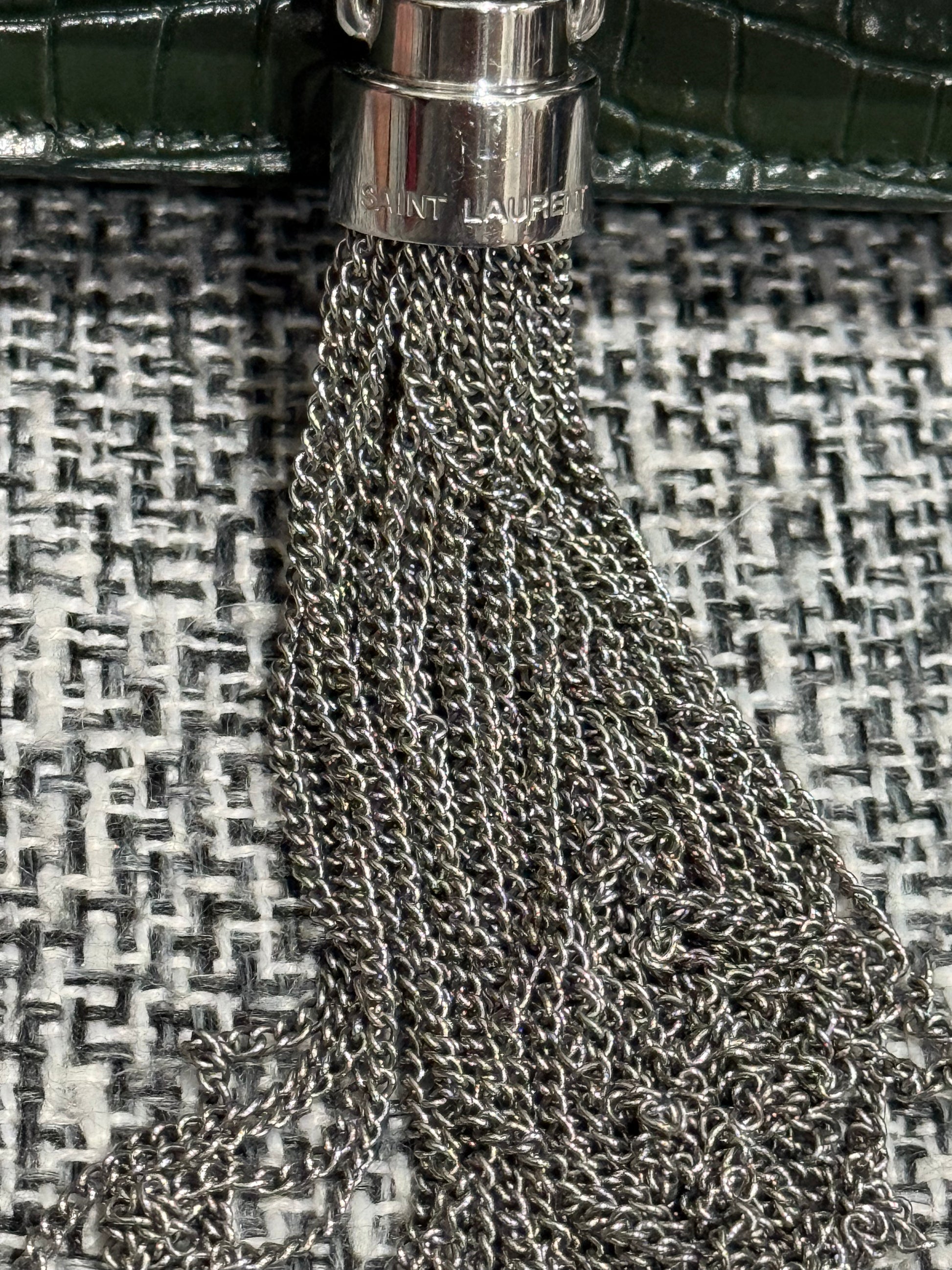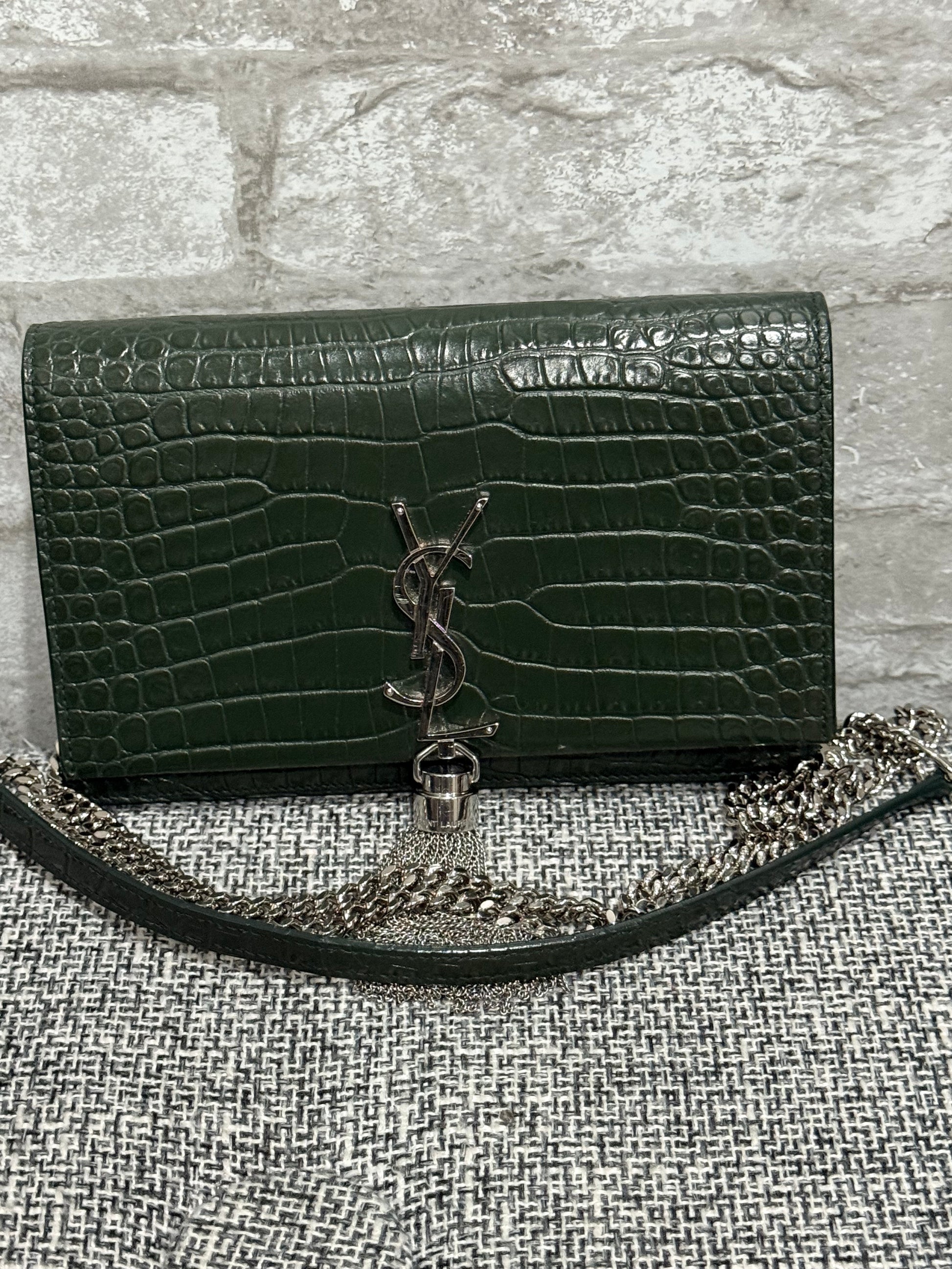 Classic Monogram Tassel Crossbody Bag Crocodile Embossed Leather