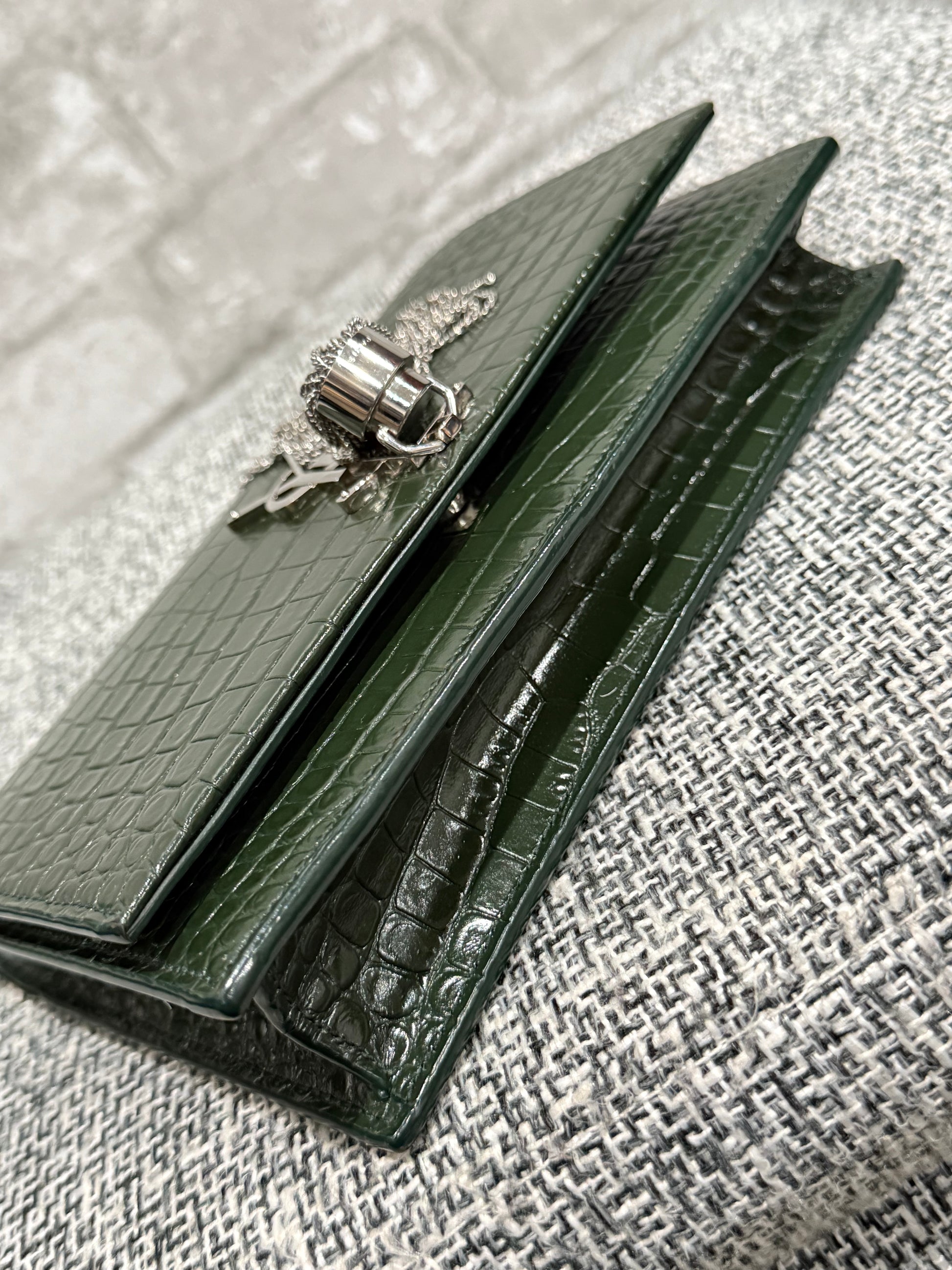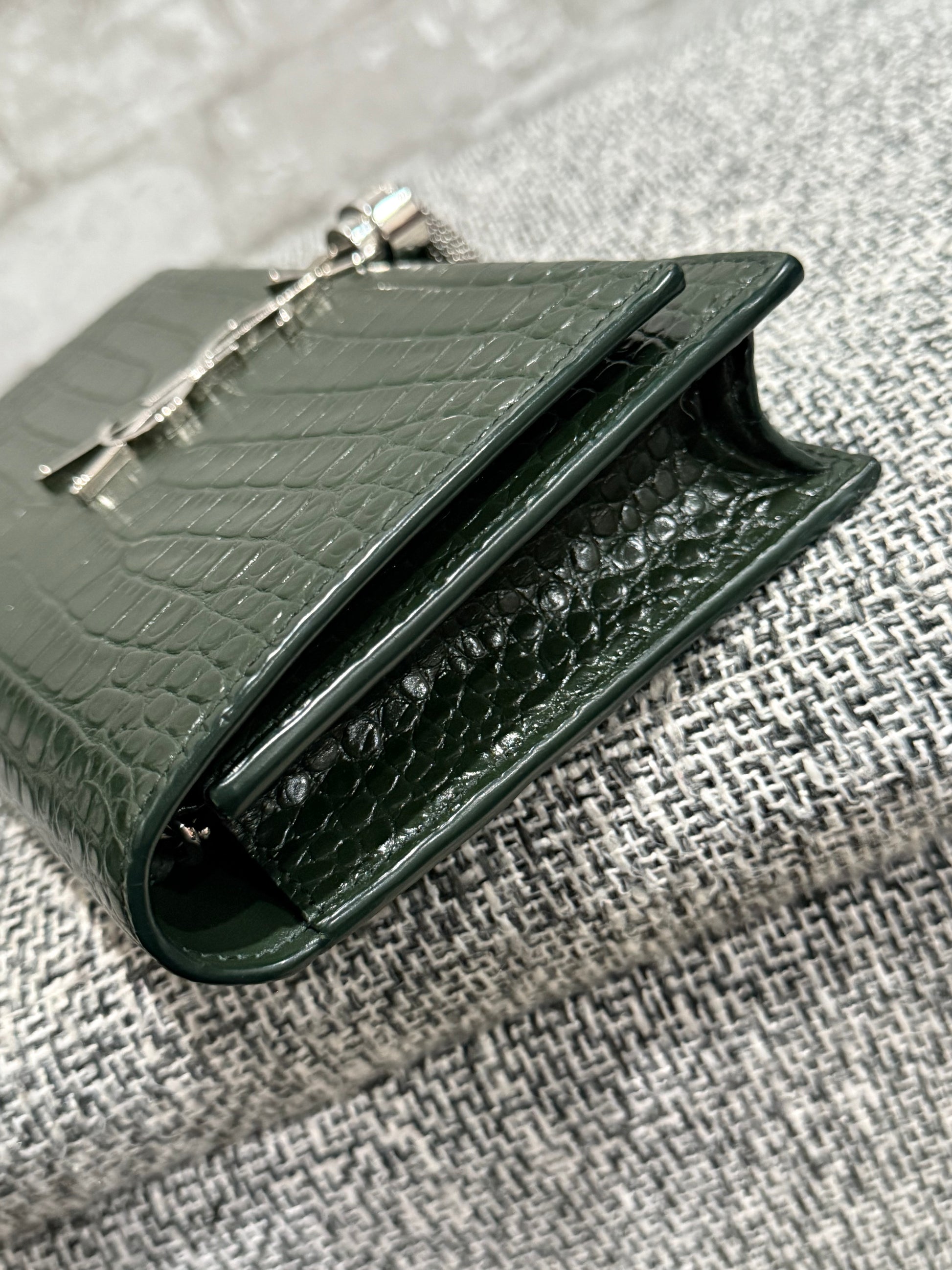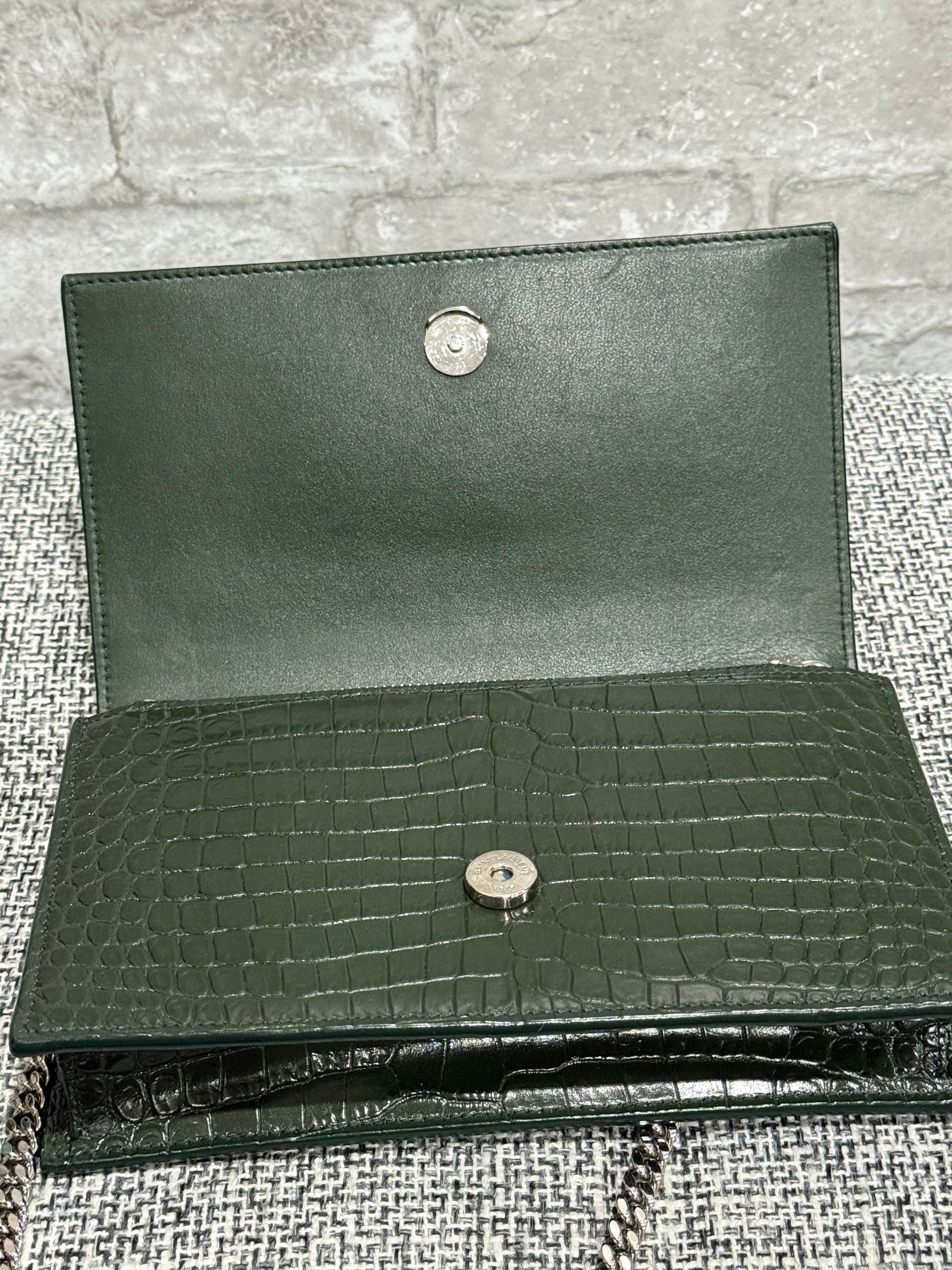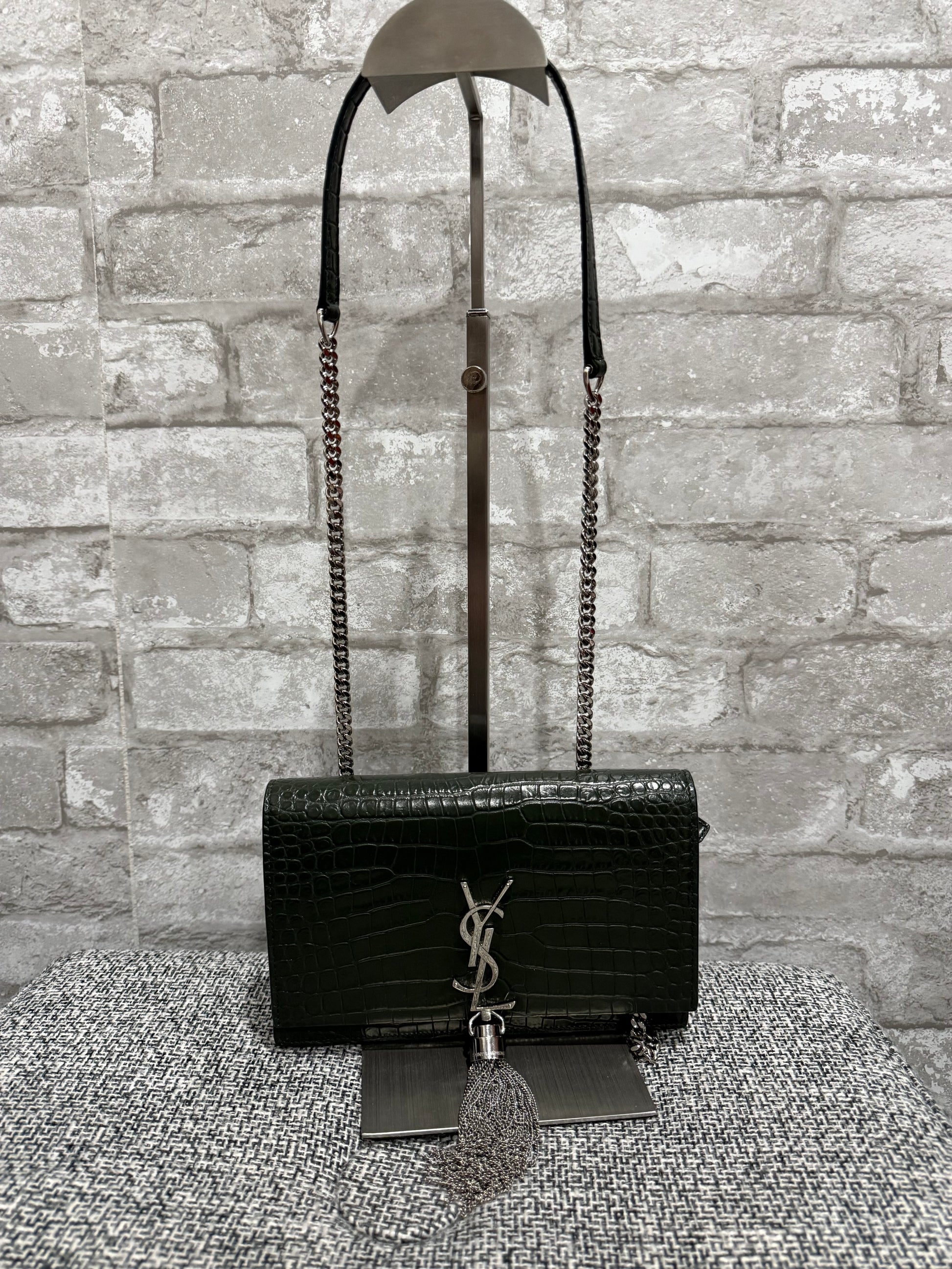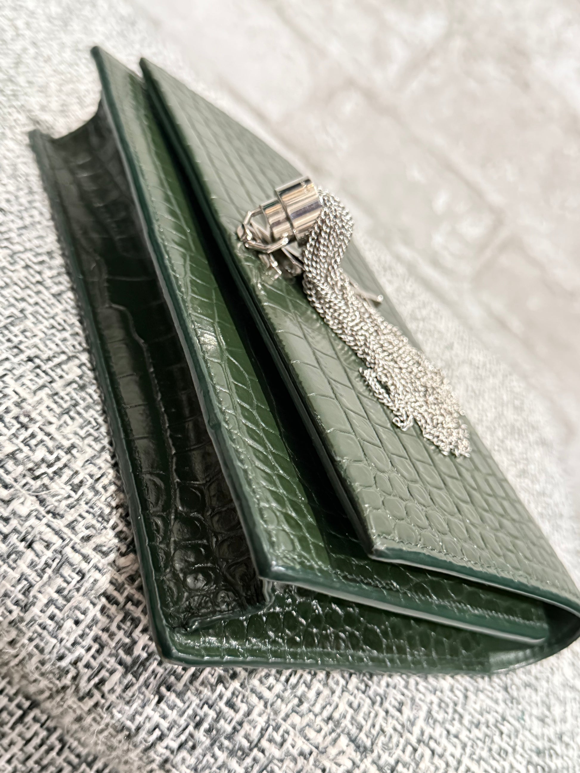Classic Monogram Tassel Crossbody Bag Crocodile Embossed Leather
