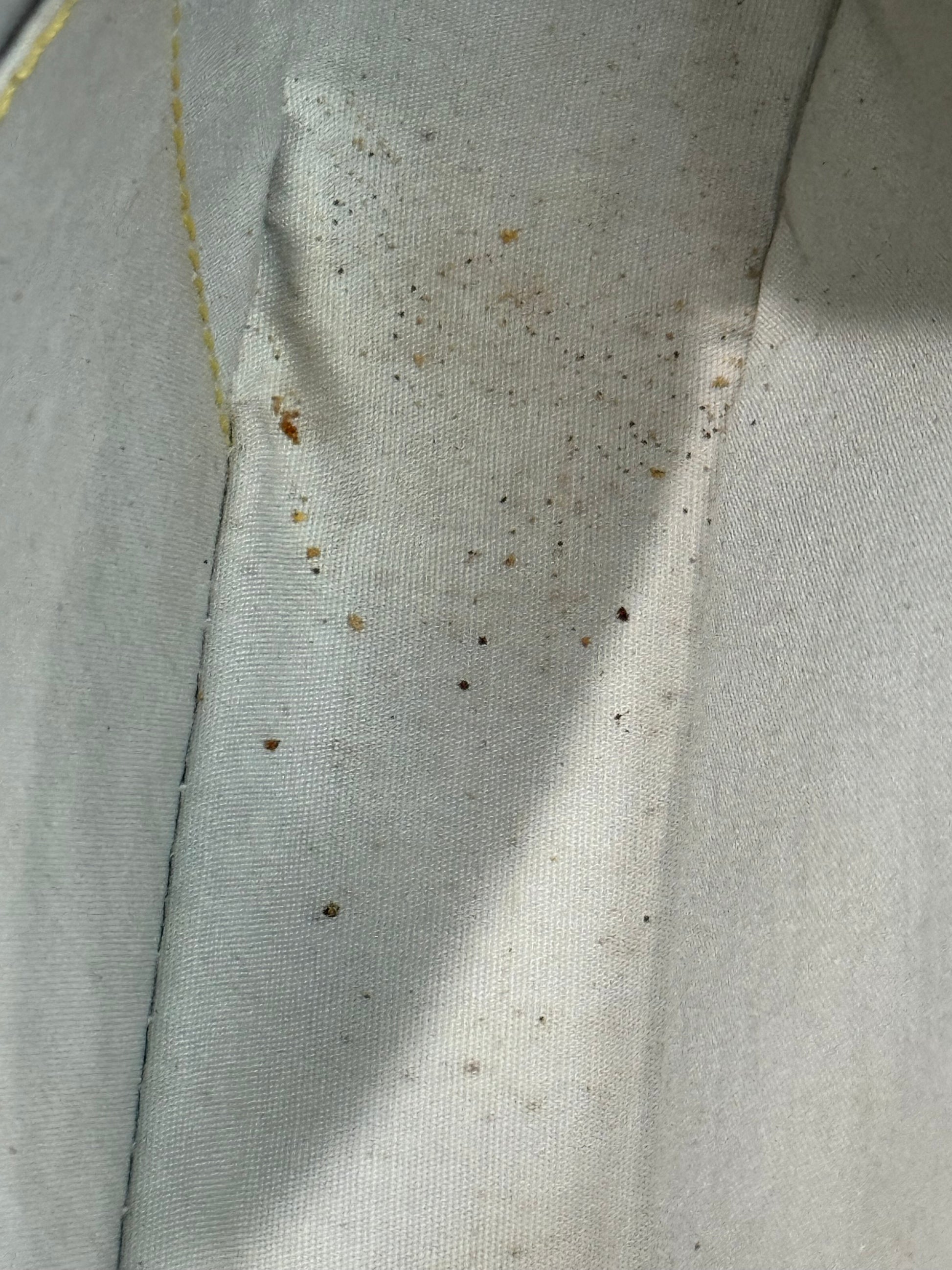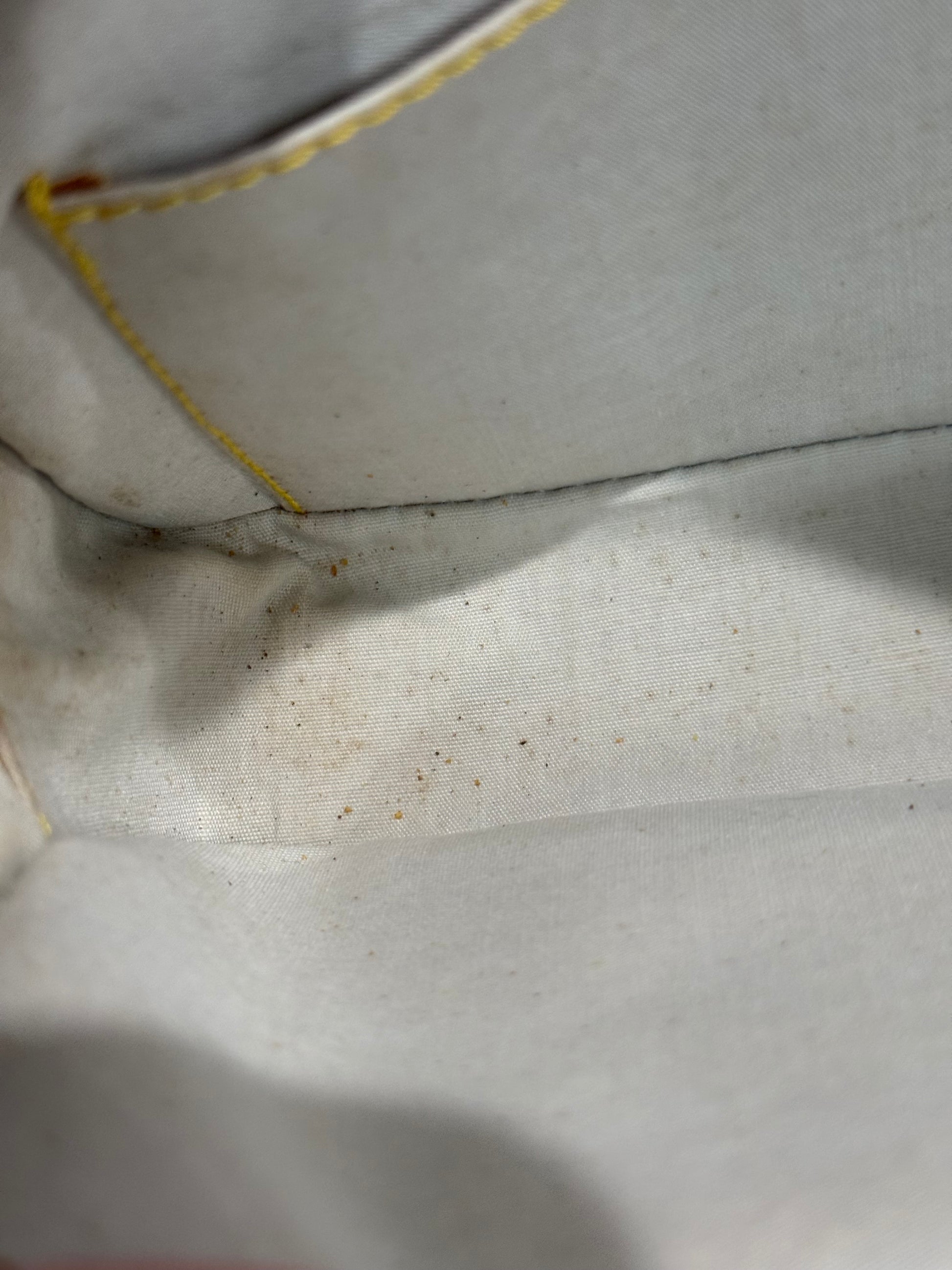 good preloved condition with normal signs of vintage wear. tarnish, fading on hardware; some interior stain.