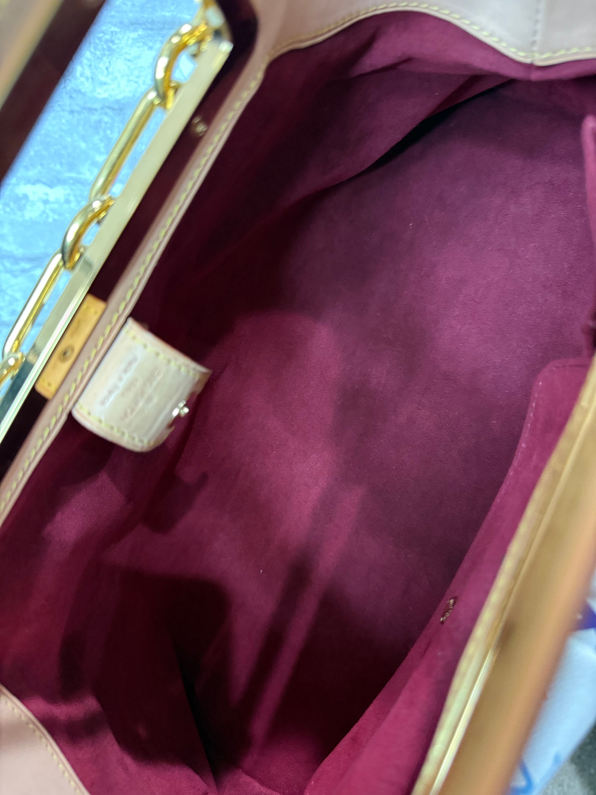 Details: Darken Patina throughout. Some wear, rubbings, light watermarks throughout. Good authentic preloved condition. Vibrant monogram colored canvas.